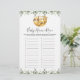 Sloth themed baby shower name race game card features a watercolor sloth illustration and watercolor greenery eucalyptus garland and elegant handwritten style font.