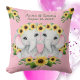 If you know someone recently blessed with sweet twin baby girls, they will love this pillow! Each side has an image of identical baby elephants with sunflower adornment. Sunflowers are also at the top corners and at the elephants' feet. One side of the pillow has the names of the babies and their birth date. The other side has another custom text field. Everything is placed on a pink background. Adorable!