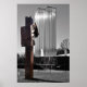 Unique view of a Twin Towers Memorial in black and white with an actual piece of the building in the foreground in color. Great piece for the home or office.