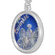 A white and silver angels rests against an indigo blue nighttime sky. A star appears to the left under the word "twinkle". Glitter on the painting gives this angel painting the magic of a shimmering twinkle. This is a great angel image to use for the holidays like Christmas or New Year's. You can personalize this angel art painting necklace pendant with your own text and images using the "Customize It" option. Make personal guardian angel gifts!