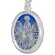 A white and silver angels rests against an indigo blue nighttime sky. A star appears to the left under the word "twinkle". Glitter on the painting gives this angel painting the magic of a shimmering twinkle. This is a great angel image to use for the holidays like Christmas or New Year's. You can personalize this angel art painting necklace pendant with your own text and images using the "Customize It" option. Make personal guardian angel gifts!