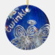 A white and silver angels rests against an indigo blue nighttime sky. A star appears to the left under the word "twinkle". Glitter on the painting gives this angel painting the magic of a shimmering twinkle. This is a great angel image to use for the holidays like Christmas or New Year's. You can personalize this angel art painting ornament pendant with your own text and images using the "Customize It" option. Make personal guardian angel gifts!