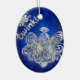 A white and silver angels rests against an indigo blue nighttime sky. A star appears to the left under the word "twinkle". Glitter on the painting gives this angel painting the magic of a shimmering twinkle. This is a great angel image to use for the holidays like Christmas or New Year's. You can personalize this angel art painting ornament pendant with your own text and images using the "Customize It" option. Make personal guardian angel gifts!
