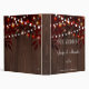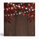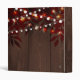 Wedding custom binder featuring rustic twinkle lights and rust autumn leaves on dark brown barn wood background. Ideal for your night autumn fall | elegant rustic country | outdoor backyard themed wedding.