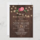Rustic country style housewarming bbq / party stylish invitation template on dark brown barn wood featuring a blush fuchsia pink flowers bouquet, string of lights and three doodle hearts on the back. Fill in your information in the spots, You can choose to customize it further changing fonts and colors of lettering. ---- The invitation is suitable for outdoor garden / backyard rustic country housewarming parties. --- If you need assistance, please contact me!