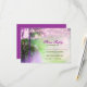 beautiful ombre purple beach wedding or destination wedding RSVP card with string of lights hanging on the palm trees.