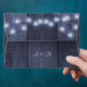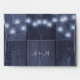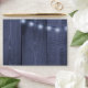 Initials monogram wedding envelope with rustic strings of twinkle hanging lights on dark blue grey barn wood background and white snowflakes inside . Insert your names initials in the spot! Ideal for your winter rustic country | chic elegant | wonderland themed wedding or other occasions.