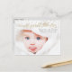 Twinkly gold stars fall all around a sweet baby (customize with your own newborn photo) with "twinkle twinkle little star" in fancy gold glitter effect script (note no actual gold glitter or leaf will be printed on the paper - it will just print to look like gold glitter). This birth announcement postcard is simple, chic and sweet, with the script adding an elegant flair. Use a picture of baby on a soft white background, so the text will be readable and the stars will stand out. Optionally, don't forget to check the back, where you can upload another photo of baby in a fun taped-up polaroid frame and add a personal heartwarming message to the postcard! Perfect for baby boy or baby girl.