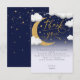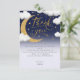 This is an adorable first birthday thank you card based on the “Twinkle twinkle little star” nursery rhyme. The design features a cute handwritten script calligraphy font, a golden moon with gold stars and cute fluffy clouds in a twinkling starry night sky.