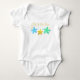 These cute star themed baby outfits match the Twinkle Twinkle Little Star Baby Shower collection found in my shop. Stylish script text reads, "Star of the show" with three cute, cartoon, smiling stars.