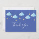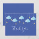 Twinkle twinkle little star thank you card, featuring white script thank you text with cute baby blue clouds and golden stars on strings. You can personalise with your own thank you message on the reverse, a perfect way to say thank you! Designed by Thisisnotme©