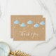 Twinkle twinkle little star thank you card, featuring white script thank you text with cute baby blue clouds and golden stars on strings, on a rustic kraft boho background. You can personalize with your own thank you message on the reverse, a perfect way to say thank you! Designed by Thisisnotme©