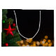 These gorgeous Merry Christmas party gift bags feature modern gold handwritten script over twinkling lights next to a festive Christmas tree that is decorated with red and green ornaments. Customize your elegant holiday celebration presents with personalized script over the black night sky.