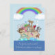 Cute birth announcement for twins, featuring Noah's Ark theme with adorable animals filling up the boat and rainbow and clouds in the sky. Noah's Ark original artwork©delightful-doodles.