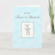With not one, but two little blessings, this Baptism card is for the boy twins as they are baptized. A lacy looking background is soft blue. Two silver-gray colored crosses hang in the center, with the word Blessings duplicated, and framing the crosses. Sweet card for boy twins on their Baptism day!