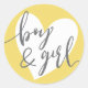 Twins "Boy and Girl" Gray Yellow White Heart Classic Round Sticker
