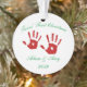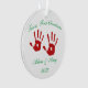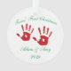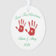 Personalized twins' First Christmas Ceramic Holiday Ornament. The front and back images are the same and can be personalized with child's name and year.