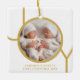 This twin's cute keepsake Christmas photo ornament is decorated with the word JOY in gold typography on a white background.
