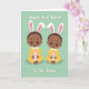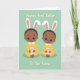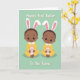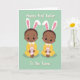This design shows two matching cartoon infants sitting cross-legged side by side, their bodies angled slightly toward each other with a gentle, friendly closeness. Each child has dark skin, curly dark hair, and tall bunny-like ears in white with soft pink inner sections, adding a spring touch 🐰. They wear bright yellow one-piece outfits with white collars plus tiny white polka-dot details at the cuffs and ankles, keeping the pair visually in sync. The background is a soft mint green, letting their rosy cheeks and wide dark eyes stand out as they share a tender, companionable look. Above the figures, a line of white lettering is centered near the top, and a second line of white lettering sits centered near the bottom, framing the scene like a quiet announcement. In each child’s arms is a small pastel pink plush with a simple smiling face, hinting at affection and comfort between the two. The illustration uses flat color areas and smooth outlines, with small highlights on the ears and cheeks to keep everything gentle and springlike 🌷. The pink plush toys sit against the yellow outfits, and the white text floats clearly over the mint background.