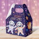 These outer space birthday first trip around the sun favor boxes feature two friendly astronauts surrounded by galaxies, planets, rockets, comets and lots of stars on a dark purple background. The text reads 'Jayden & Tyler's First Trip Around the Sun' and are ideal for a baby twin boy's first birthday. You can modify all the text to suit your event. See the whole matching collection.