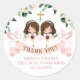 Twins Girl Floral Pink First Communion Classic Round Sticker