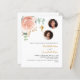 For the confirmation of 2 girls, sisters. A white background decorated with eucalyptus greenery and golden leaves and a rose gold flower. Personalize and the girls names, photos and ceremony details. Black and golden colored letters.