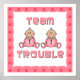 Baby twin girls funny art and baby shower gifts for anyone having twin baby girls. Team trouble on the way