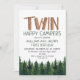 Twins Happy Campers Woodland Boys 1st Birthday Invitation