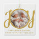 This cute Twins Names Birth Stats Christmas Photo Ornament is decorated with the word JOY in stylish gold script typography.