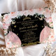 Twins Quinceañera Princess Blush Floral Gold Black Invitation