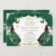 Twins Quinceañera Princesses Emerald Green Floral Invitation