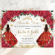 Twins Quinceañera Princesses Red Roses Floral Gold Save The Date