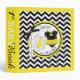 Black and white chevron print with polka-dot jumper with yellow tie and tutu and 3D-look bow and trims twins boy and girl memory book photo album.