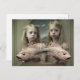 Two twins with pink fish that look like a horror movie scene spooky fantasy AI generated art