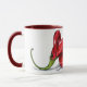 Illustration of two red hot chilies twisted around each other in an embrace. A great romantic gift for those in love, a husband, wife, girlfriend, boyfriend, lovers, or a fun gift for those who love romance or spicy food and vegetables! Also a poster, card, stamp, sticker, bag, t-shirt apron and mug.