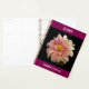 A planner with a photo of a flower having twisted pedals against a black on a purple background