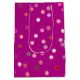 A single gift bag in our Twisty Polka Dot Spirals design in pink. Part of a versatile, decorative collection with blue, pink, and purple as the primary color schemes - a collection featuring coordinated patterns and designs created to work together. The focus is on clean, balanced visuals that are easy to mix and match across many creative projects. Works well for year-round use and a wide variety of themes and occasions. Suitable for children, teens, and adults of all ages.