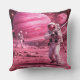 Two Astronauts Playing Baseball on Pink Planet Throw Pillow