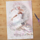 Two beautiful ballerinas, one in a white swan like costume in a leaping pose, the other below bent in a stretching pose. "Dance" written on a pink banner. Decoupage paper for craft supplies.