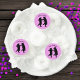 These stickers for candy mints or chocolates have two bears in black silhouette holding hands and dancing together on a bright pink background. Customise your text with the template.