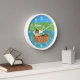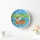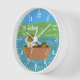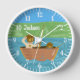 A cute nursery room or kids room wall clock with two bears fishing on a boat on a lake . Personalize it with the baby's or child's name