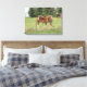 Two Beautiful Amber Horses Next to a Farmhouse Art Canvas Print