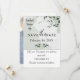 The matter paper is our sample of choice -- it's a reasonably priced, good quality, nice feeling paper stock. We were a little concerned the muted rustic blues might not reproduce all that well (usually by light colored samples), but they're just gorgeous! The white lettering is perfect in combination with the blue background, and the typography is all easy to read.