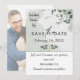 Announce your Engagement with this Elegant Save the Date Floral Couple Photo Christian Wedding Announcement Card. Featuring botanical greenery border accents with special filters—and a Christian Cross that says the beautiful & sentimental scripture verse: Two Shall Become One. Black hand lettering/Script. Green highlights. Make the necessary changes to the photo/colors/text/font using the Edit Button/Design Tool.