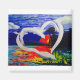 The square-shaped magnet features a colorful concept of two birds flying (heart-shaped concept) at the forefront. In the background is the beach. It is an original creation or an original artwork that can be quite abstract. It can be sent to loved ones/dear ones (especially for very special moments) as what it was thought to be primarily designed for (with its abstracted, unique message in mind).