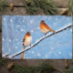 Seasonal tissue paper design featuring two birds on a branch on a snowy winter day.
