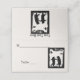 This folded standing place card for your parties, events, and weddings is white with a black silhouette image of two bears dancing together under trees with an owl watching them. Customize the name and table number area and text on the back with the templates.