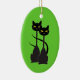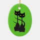 Two Black Cats with Long Necks on Green Ceramic Ornament