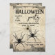 Two Black Spiders on Spider Web | Antiqued Invitation