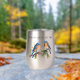 A beautiful, colorful bird image on the front and back of this stainless steel wine tumbler.